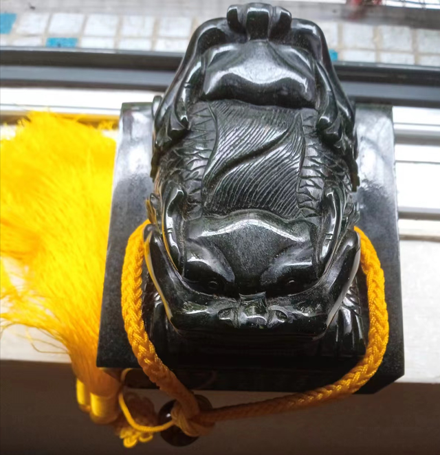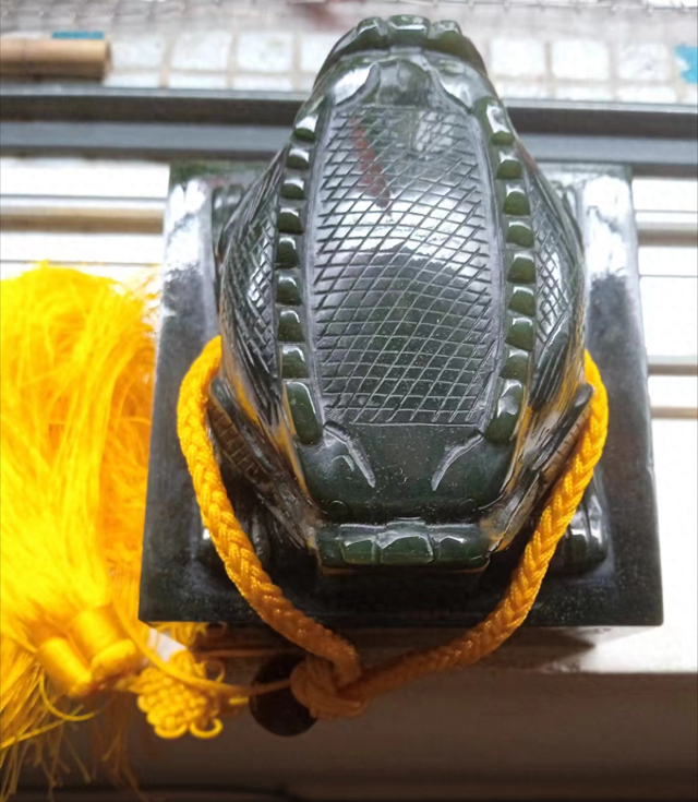 此对玉玺从原料遴选至成品问世历时三年,开创性运用“古法六艺”与“三维精雕”结合的新工艺体系: